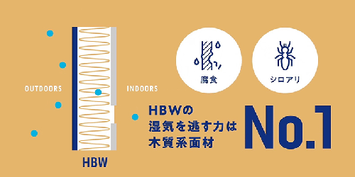 湿気が多い日本の気候に合わせて、ハイベストウッドはJIS規格F☆☆☆☆相当のホルムアルデヒド放散量基準をクリアし、シロアリや腐れにも強い性能を持っています。