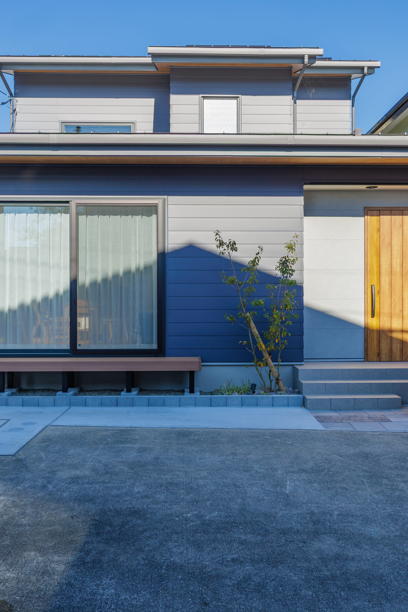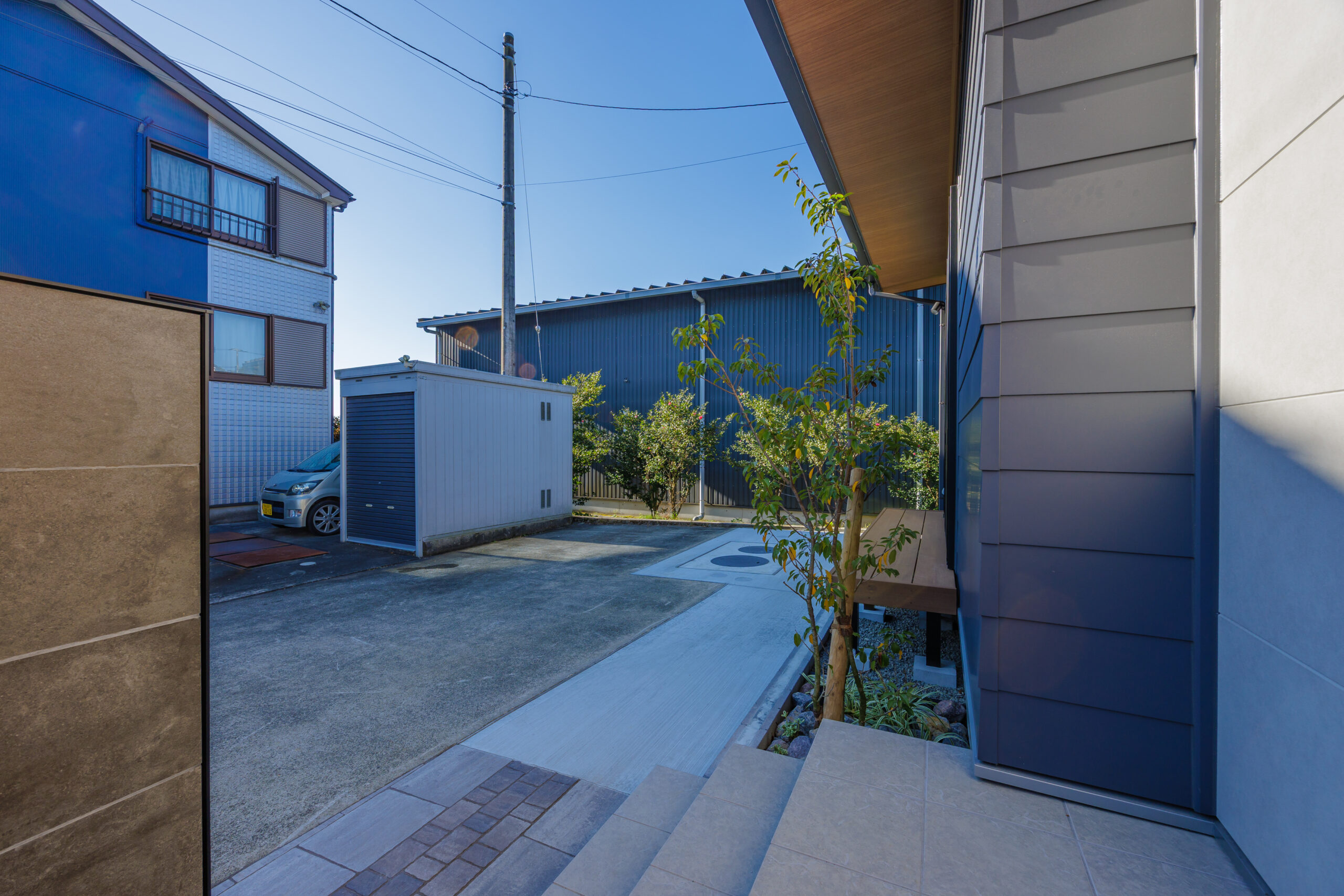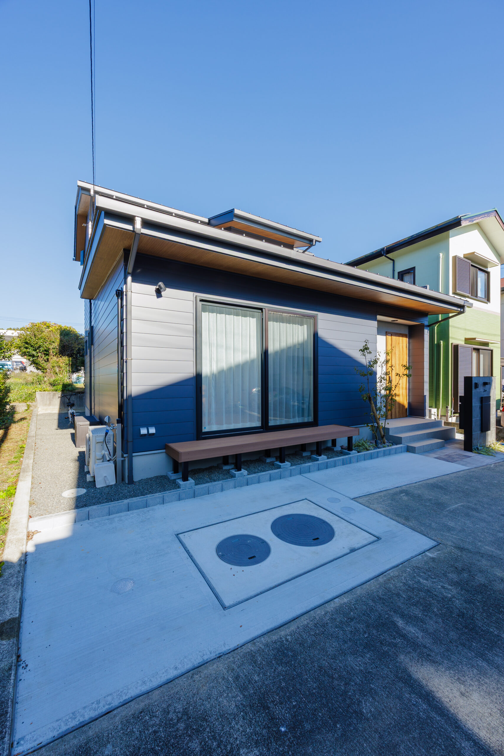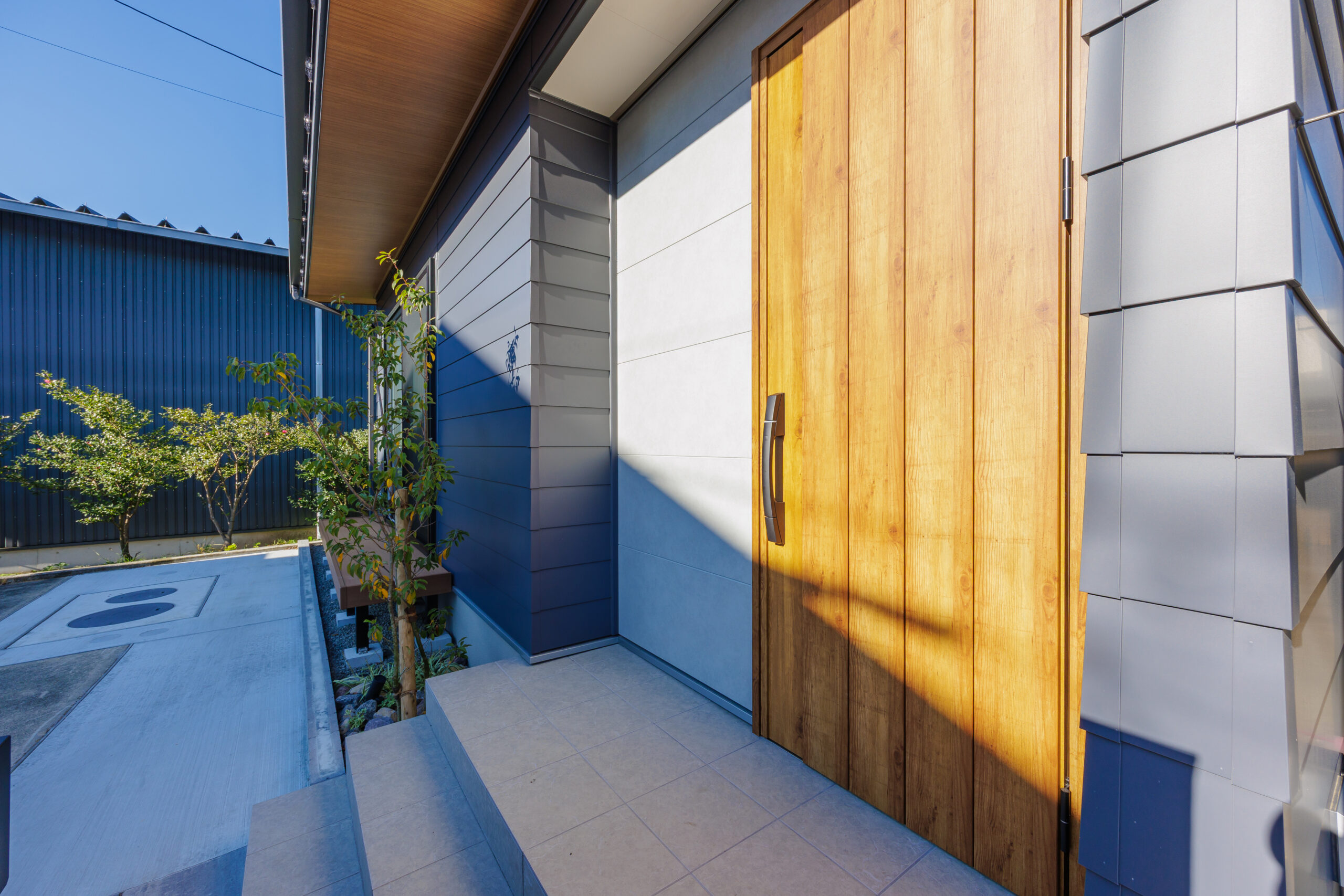 外観はスタイリッシュなガルバリウム鋼板仕上げで、現代的な印象を演出。