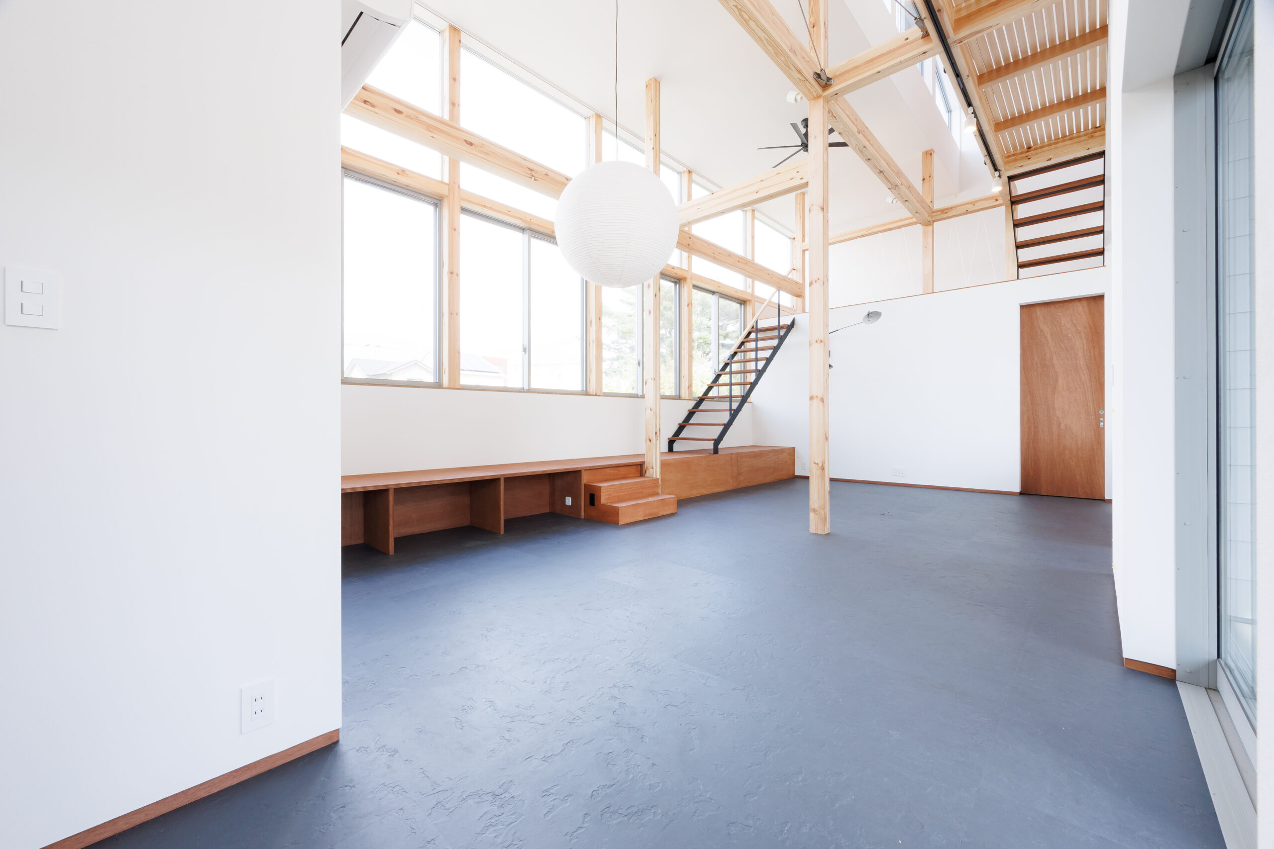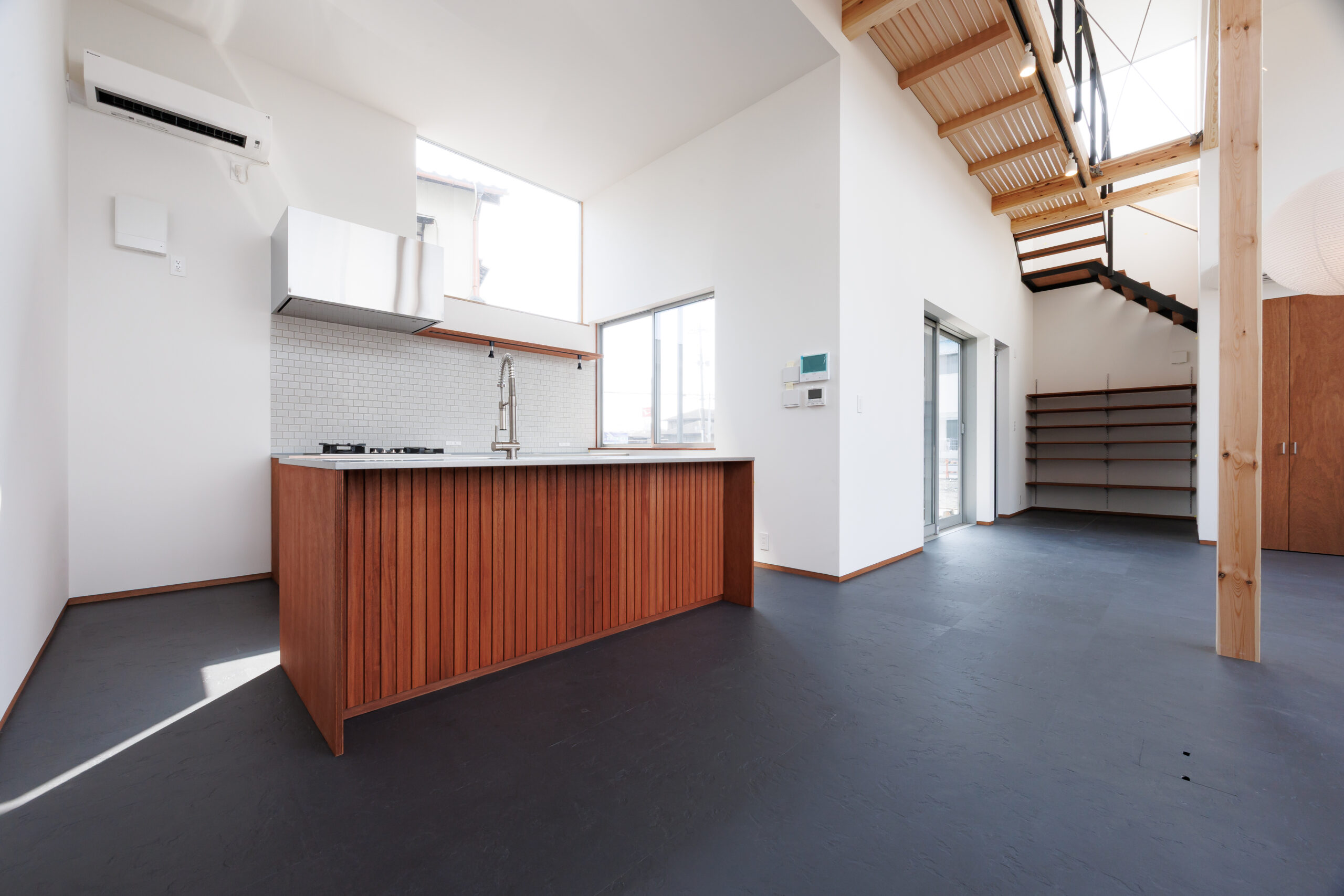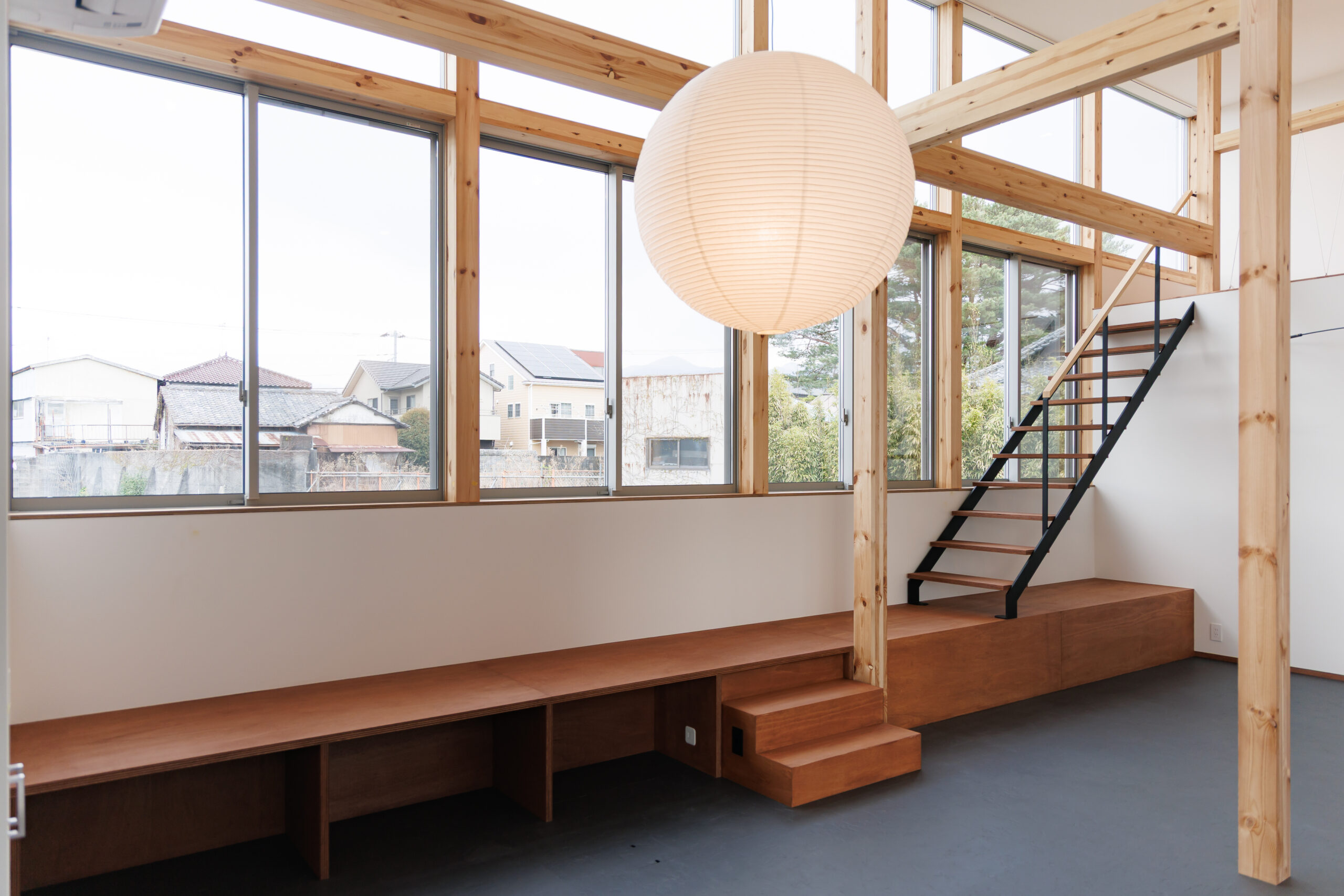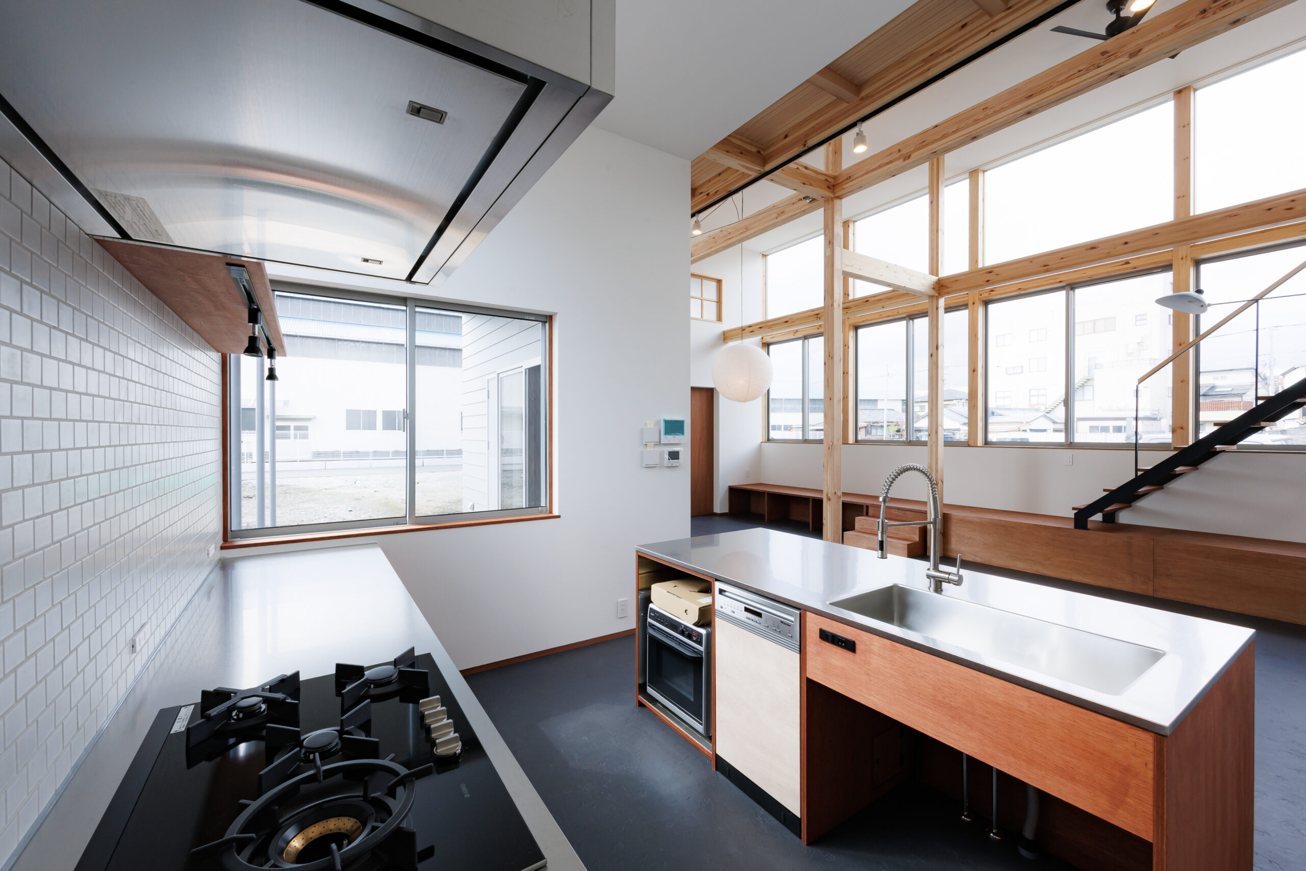 窓は高さやリズムを意識して配置され、外とのつながりと空間の広がりを感じられる設計。