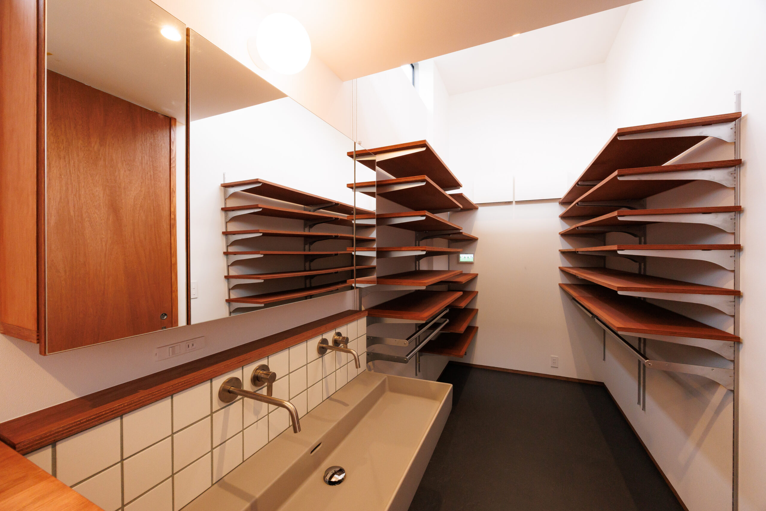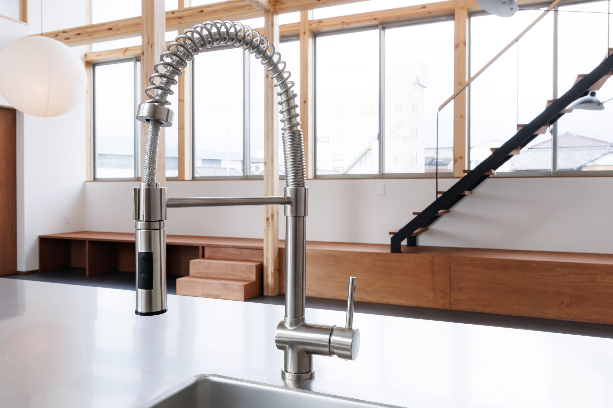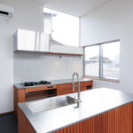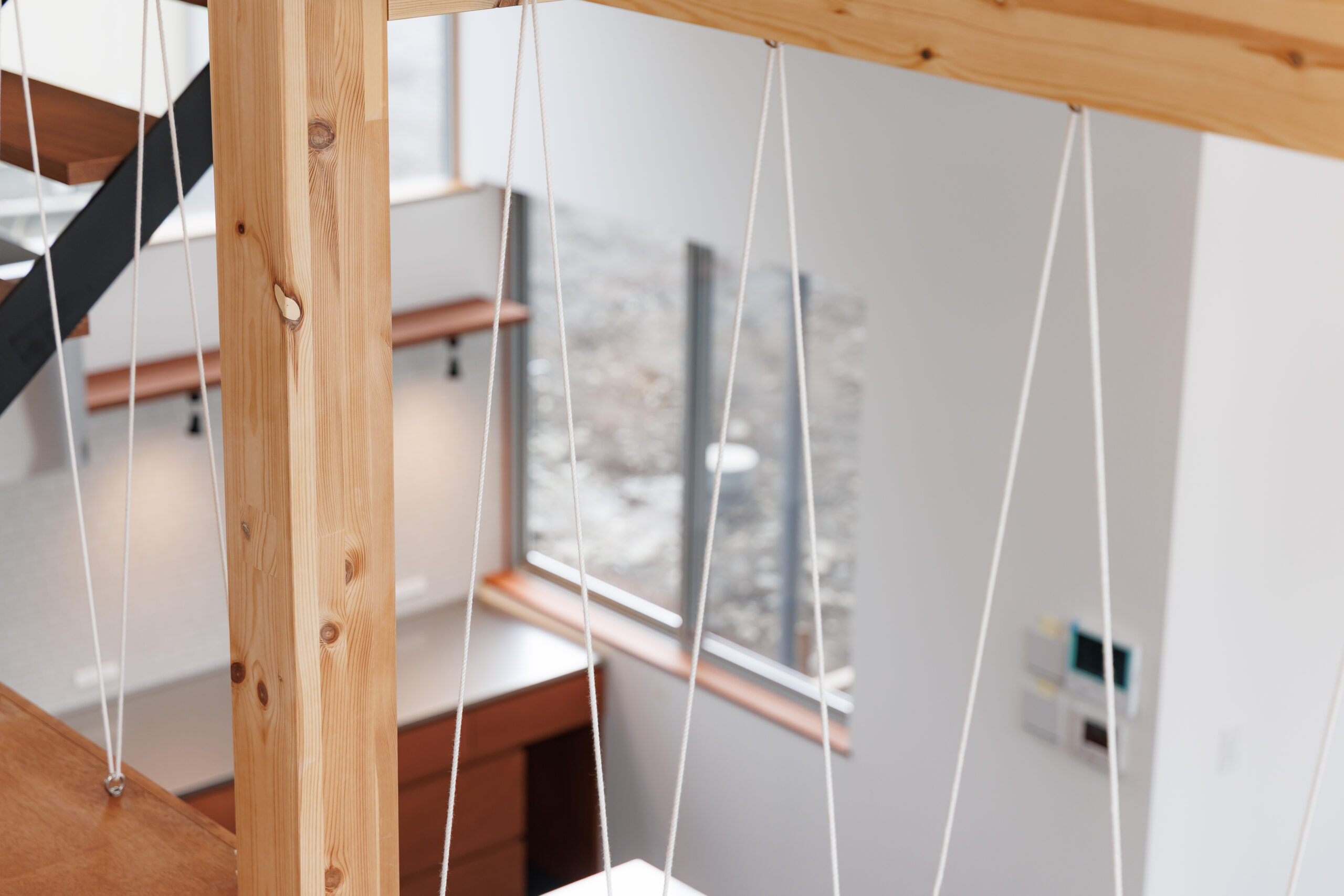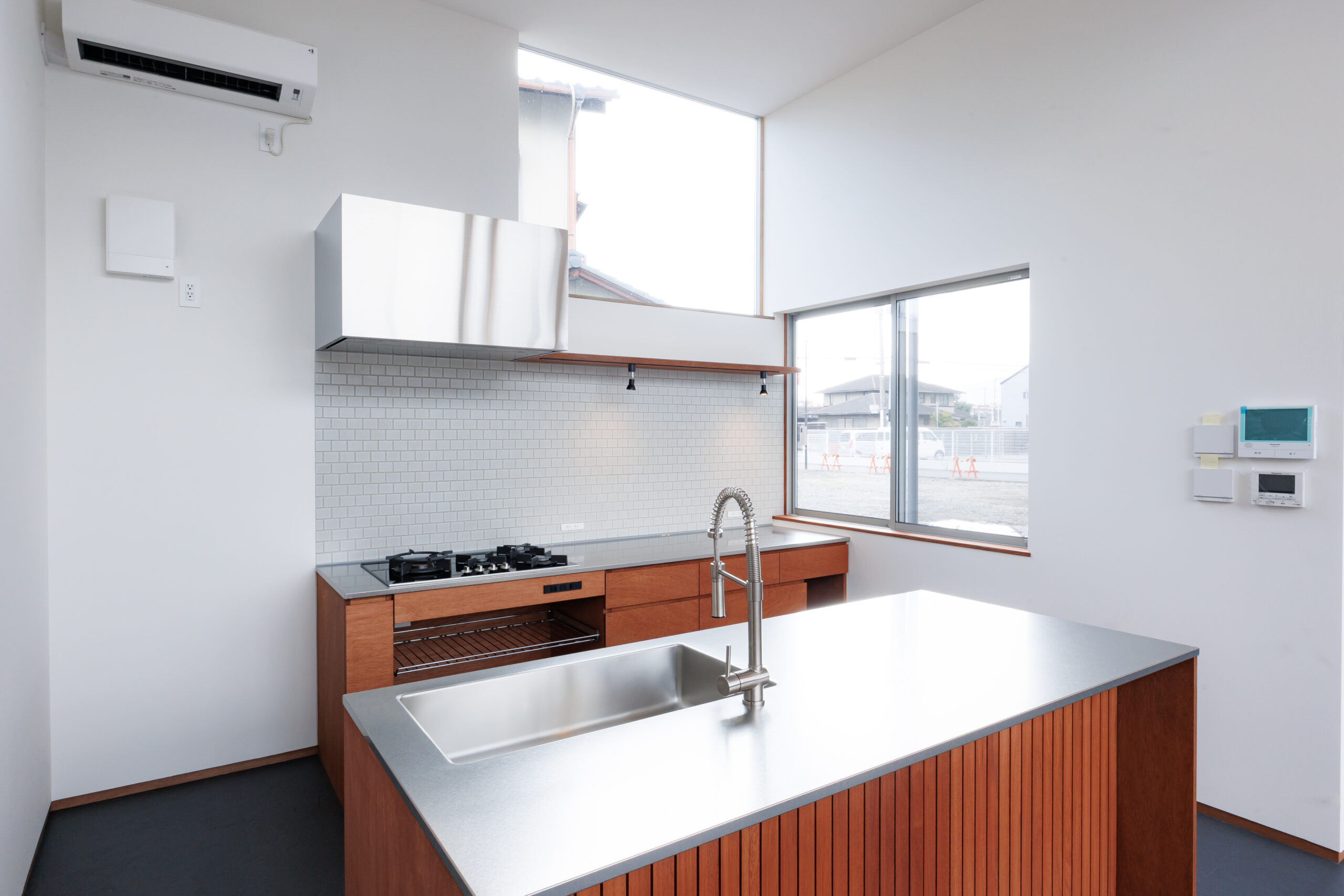 窓は高さやリズムを意識して配置され、外とのつながりと空間の広がりを感じられる設計。