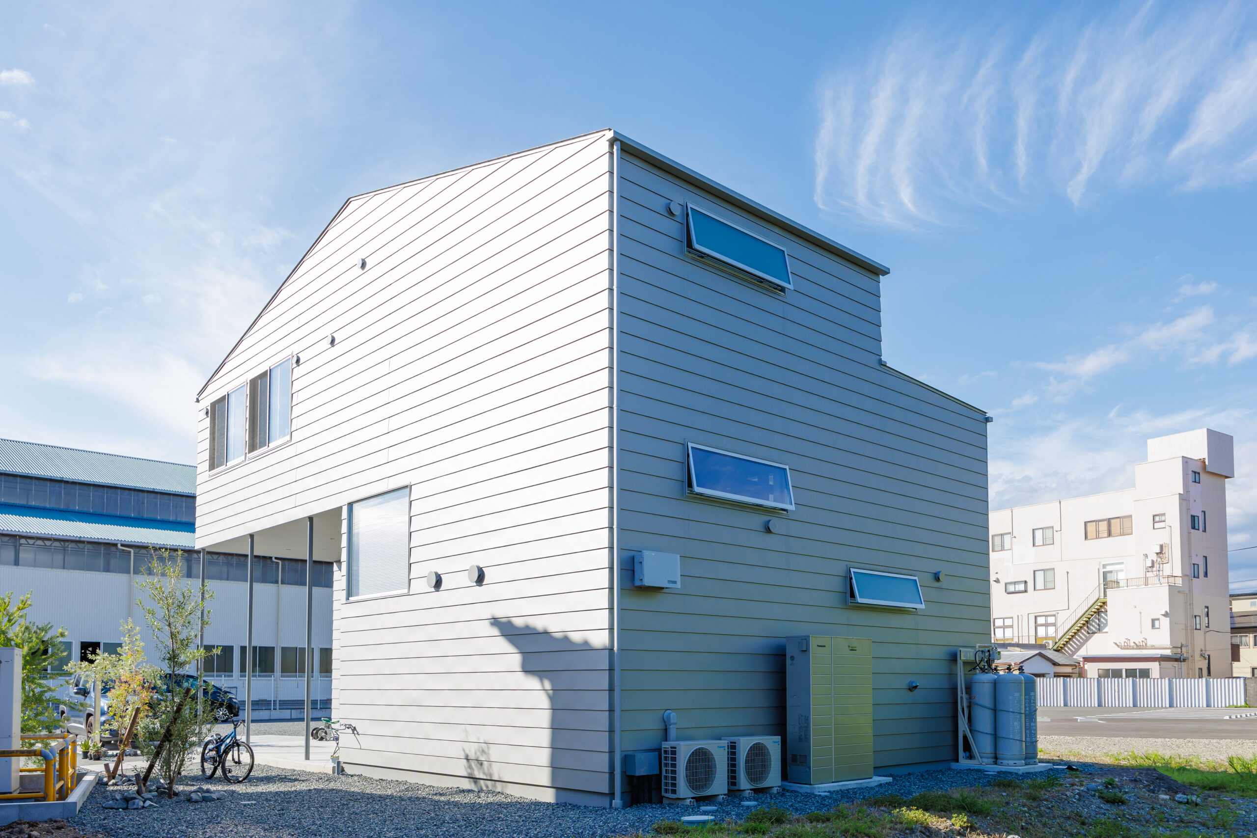 屋根・外壁はガルバリウム鋼板仕上げのシャープでスタイリッシュな外観。