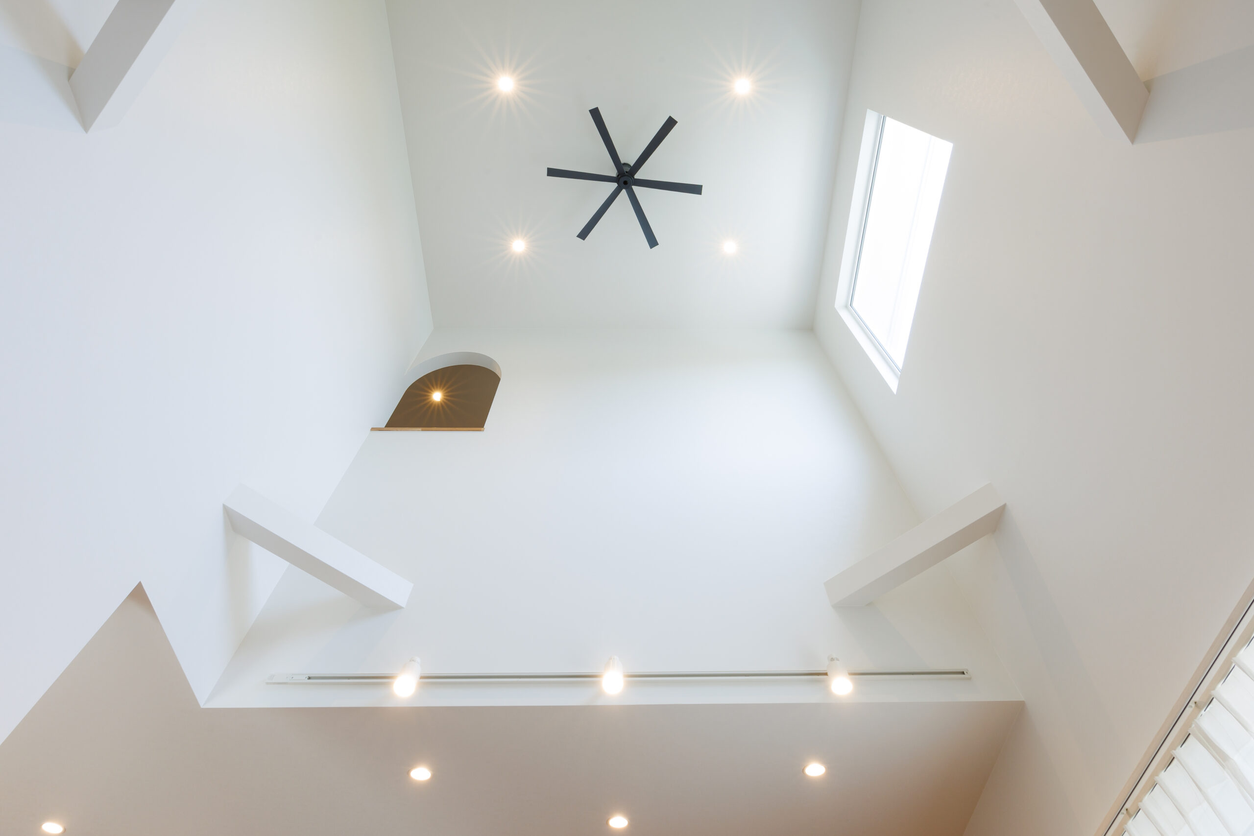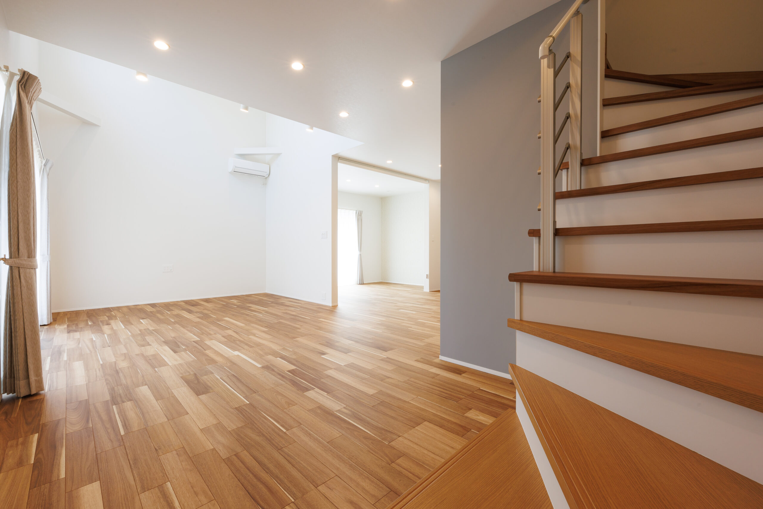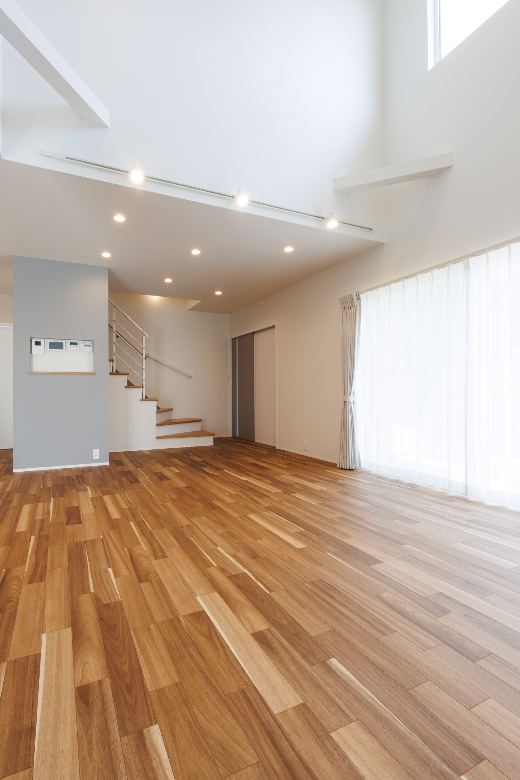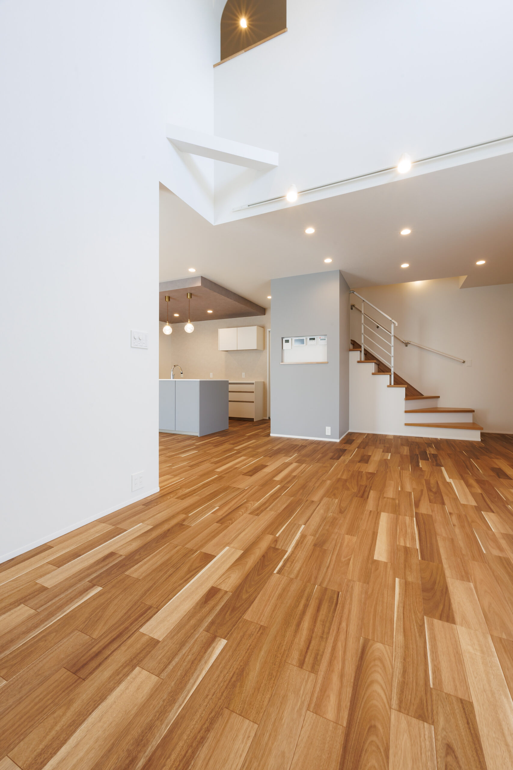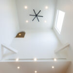 吹き抜けによって、2階にいても心地よい音楽が届き、自然と家族のつながりを感じられる設計です。