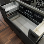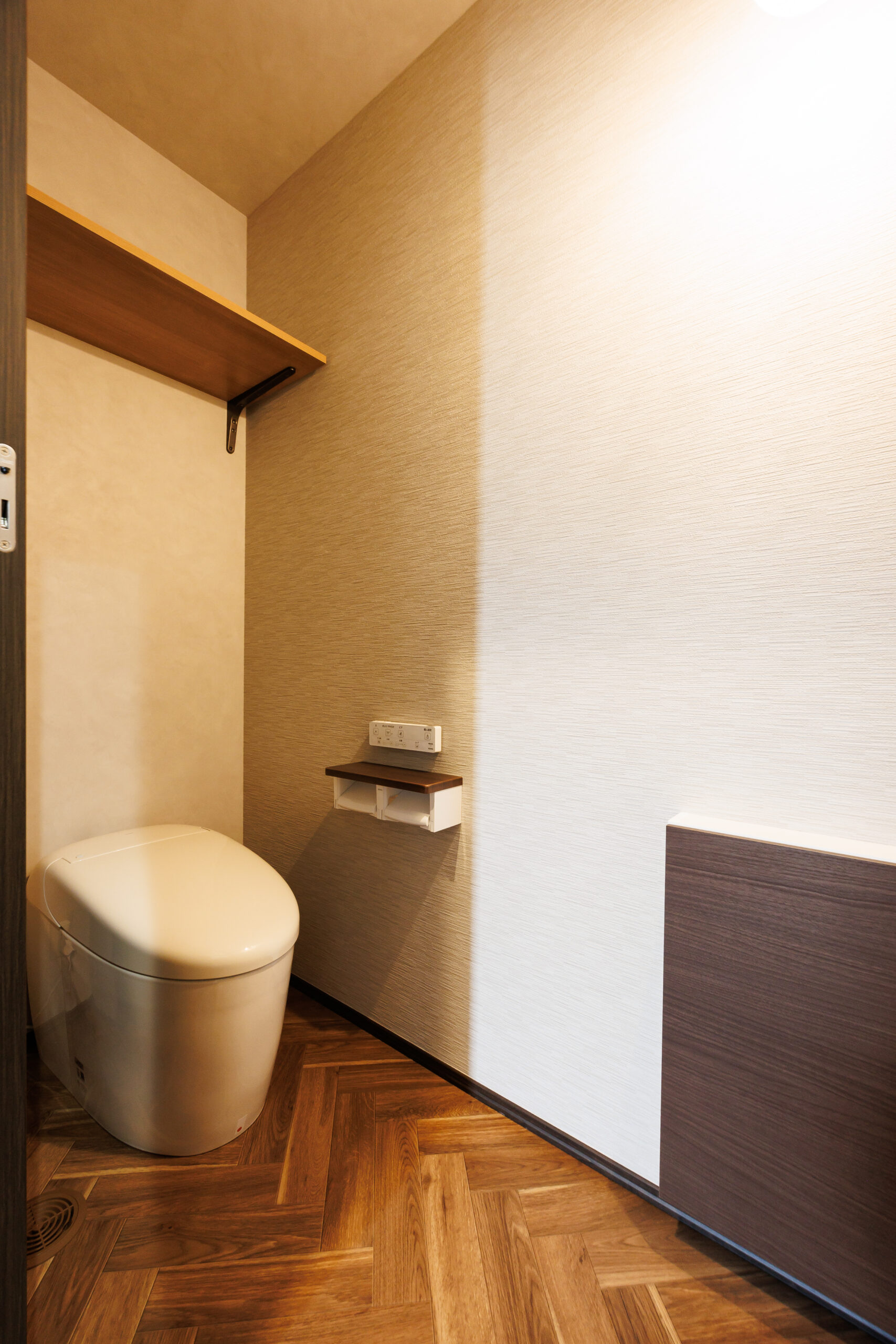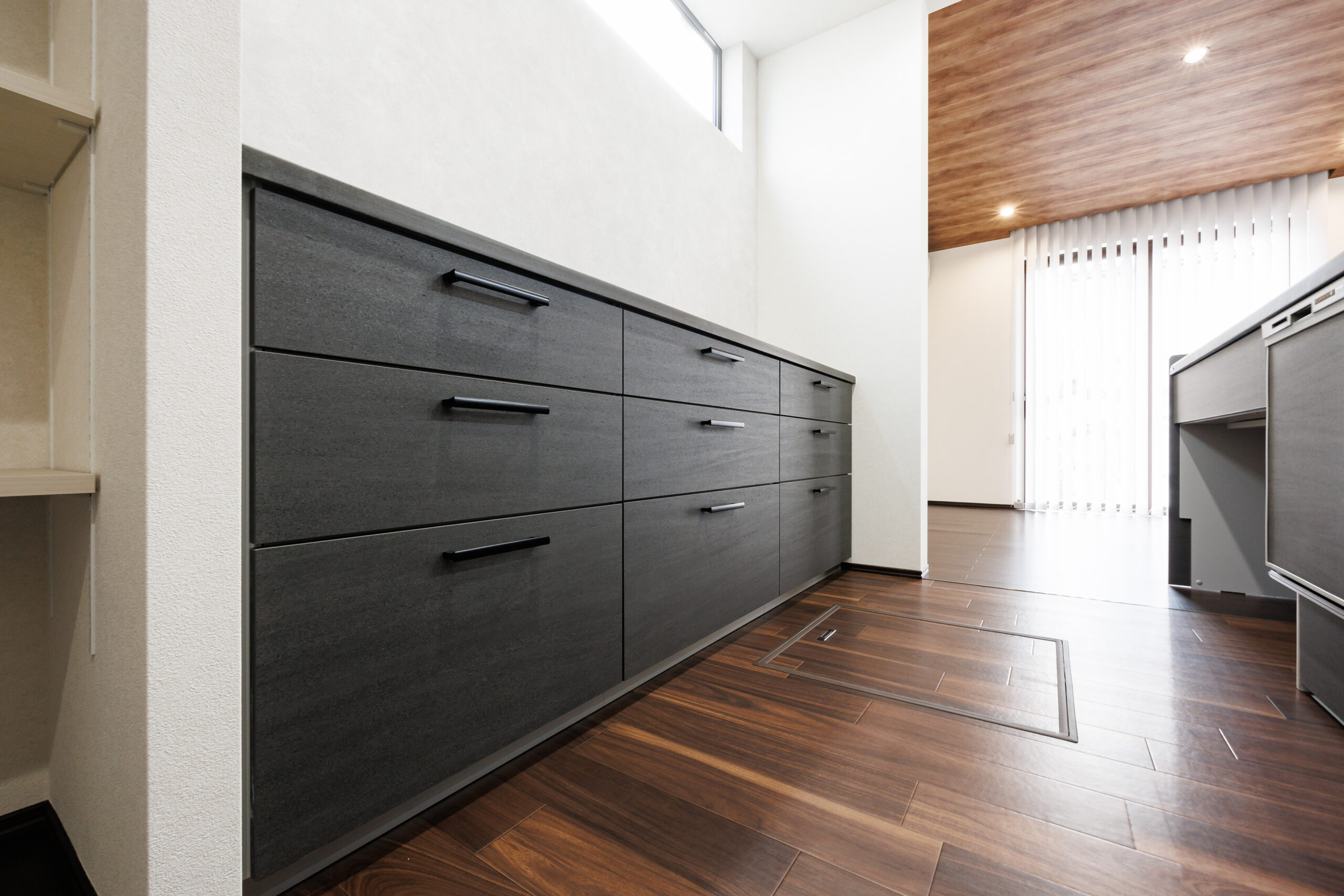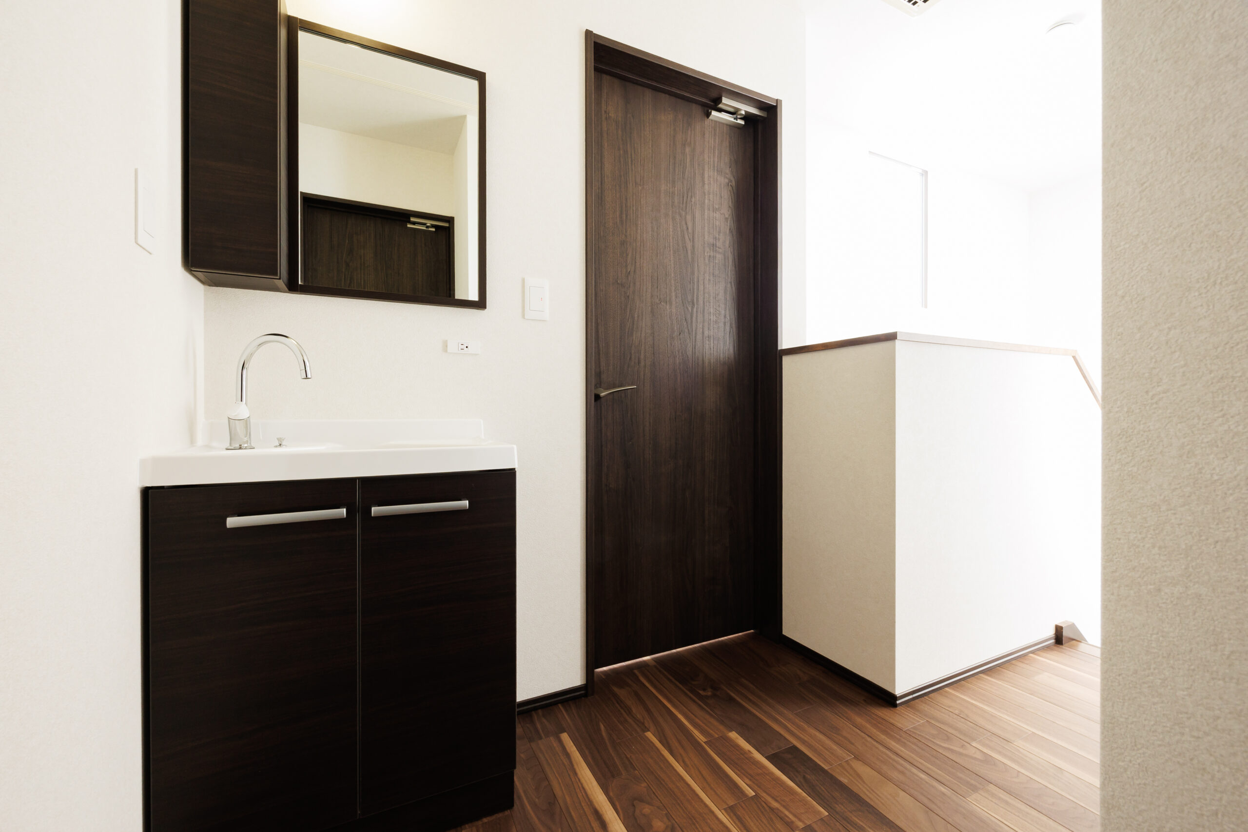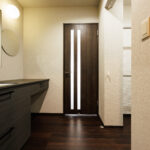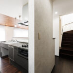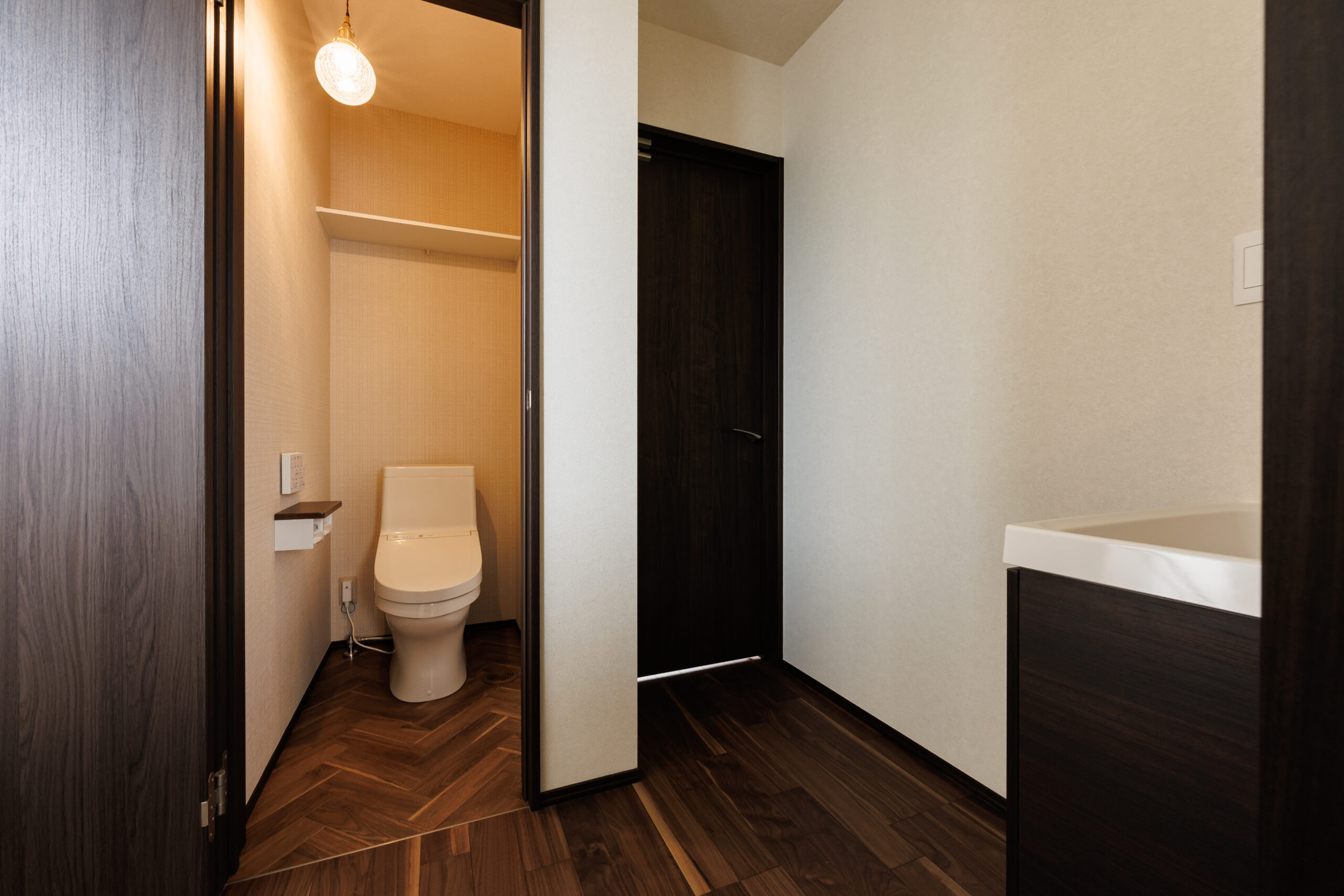 さらに、キッチン横にはランドリー兼脱衣室を配置。移動距離を最小限に抑えた効率的な家事動線により、日々の負担を軽減します。洗面台にはトクラスの上位モデル「Noare(ノーレ)W1680」を採用し、使い勝手とデザイン性を両立しました。