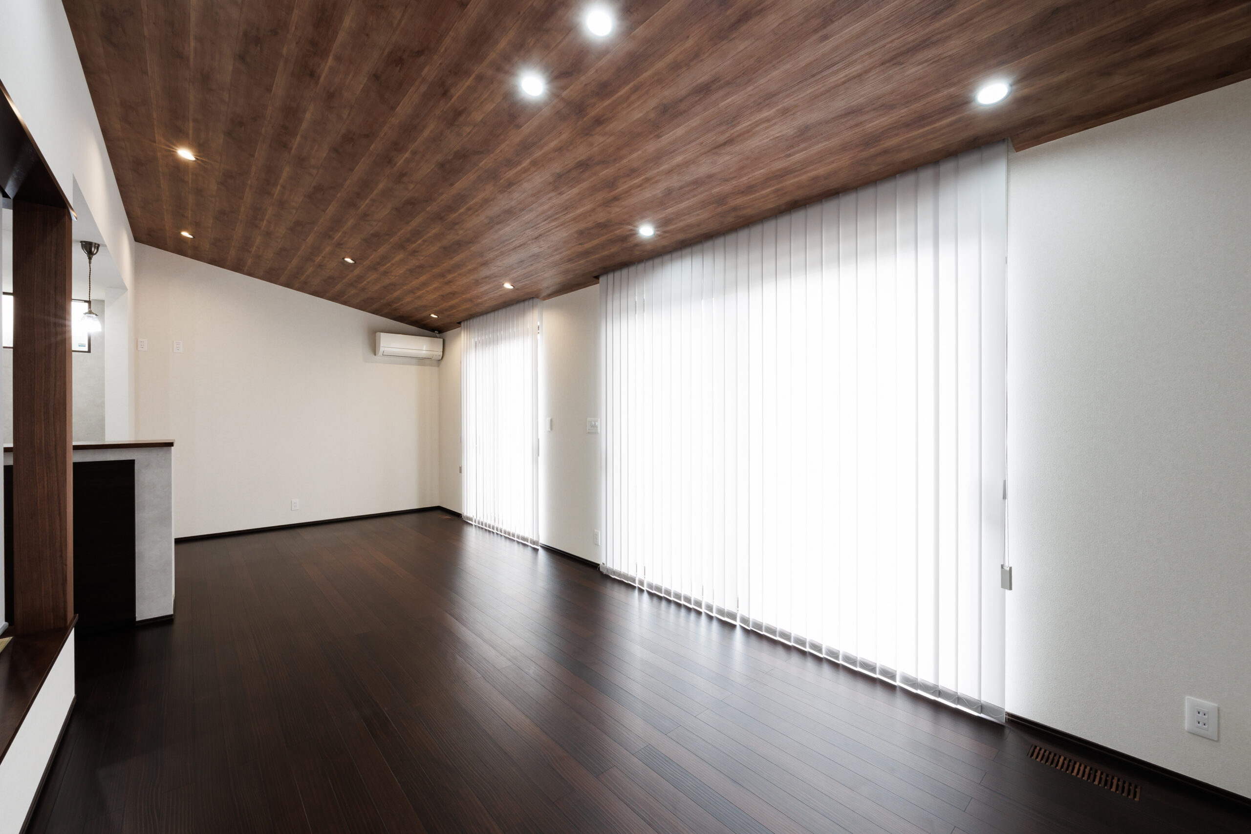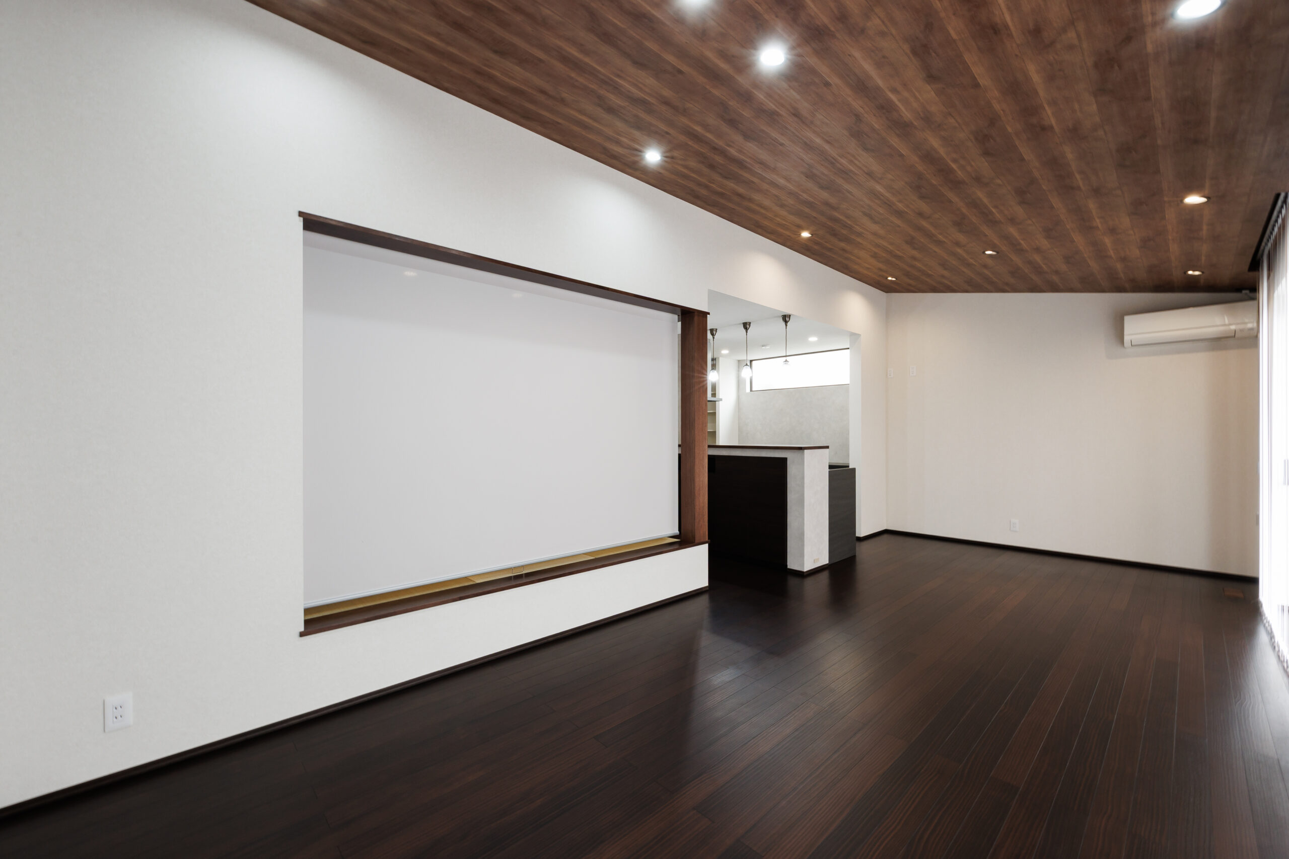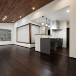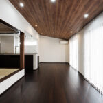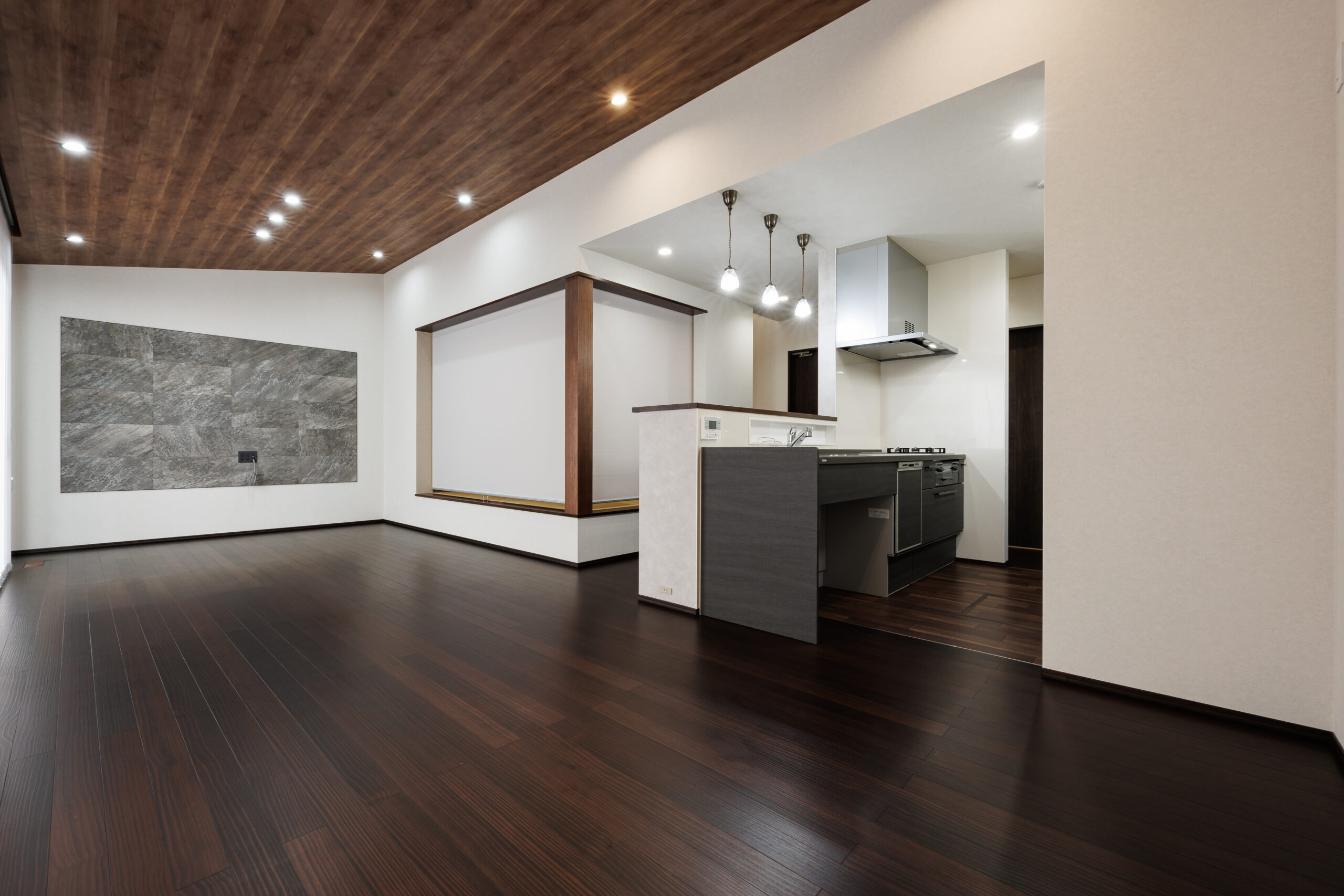 間取りの大きな特徴は、21帖のLDKに3.75帖の小上がり和室を組み合わせた、開放感と使い勝手を兼ね備えた空間設計です。和室にはイ草の畳を採用し、心地よい香りとともに落ち着いた時間を演出。将来は寝室としても使えるよう、ロールスクリーンで仕切れる仕様としました。