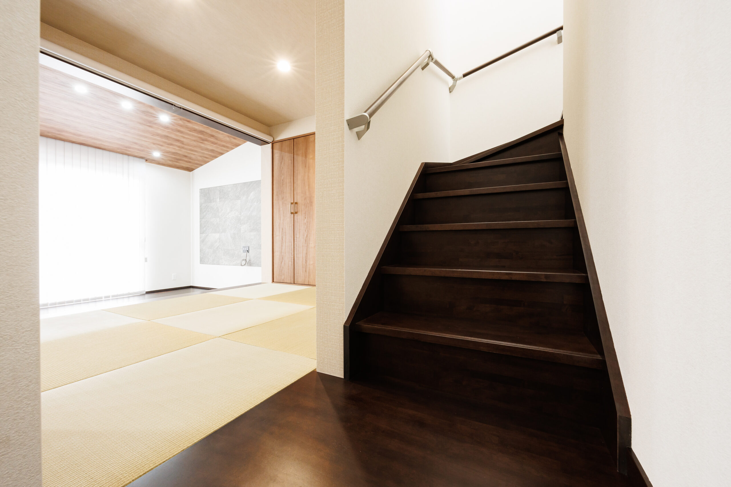 また、小上がり和室はリビングからだけでなく、階段の2段目からも出入りできる動線を確保。空間に広がりと回遊性を持たせ、日常の使いやすさを高めています。