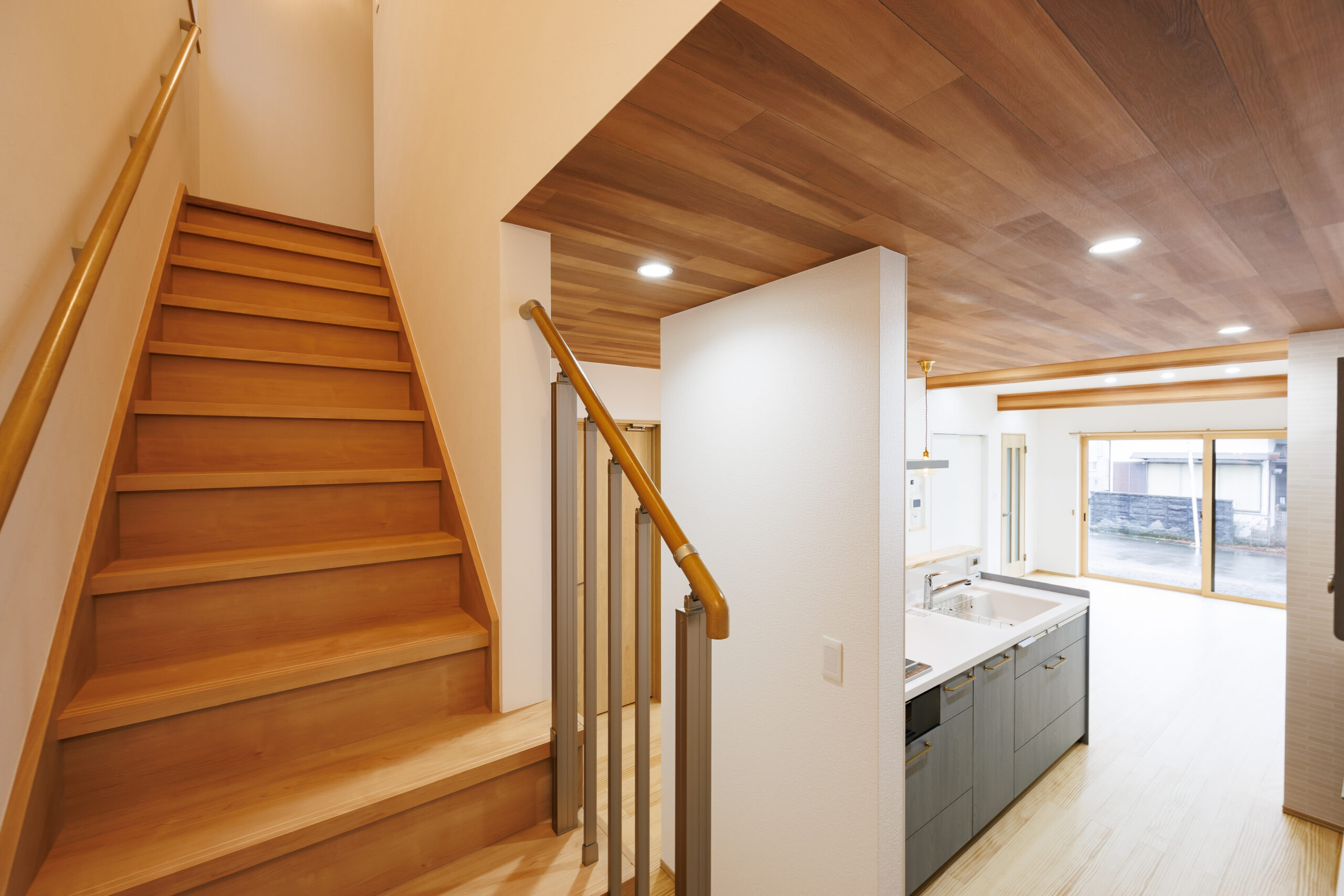 また、2階へはキッチンを通って上がる動線となっており、自然と家族が顔を合わせる機会が生まれる、あたたかな住まいとなっています。