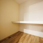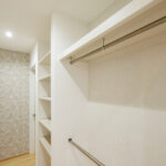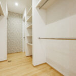 収納面も充実しており、玄関にはゆとりあるシューズクロークを設置。靴だけでなく、趣味のアイテムやお子様の外遊び道具まで美しく収まります。さらに、回遊動線の中に大容量のウォークインクローゼットを配置し、移動の無駄を省きながら収納力と暮らしやすさを両立しました。