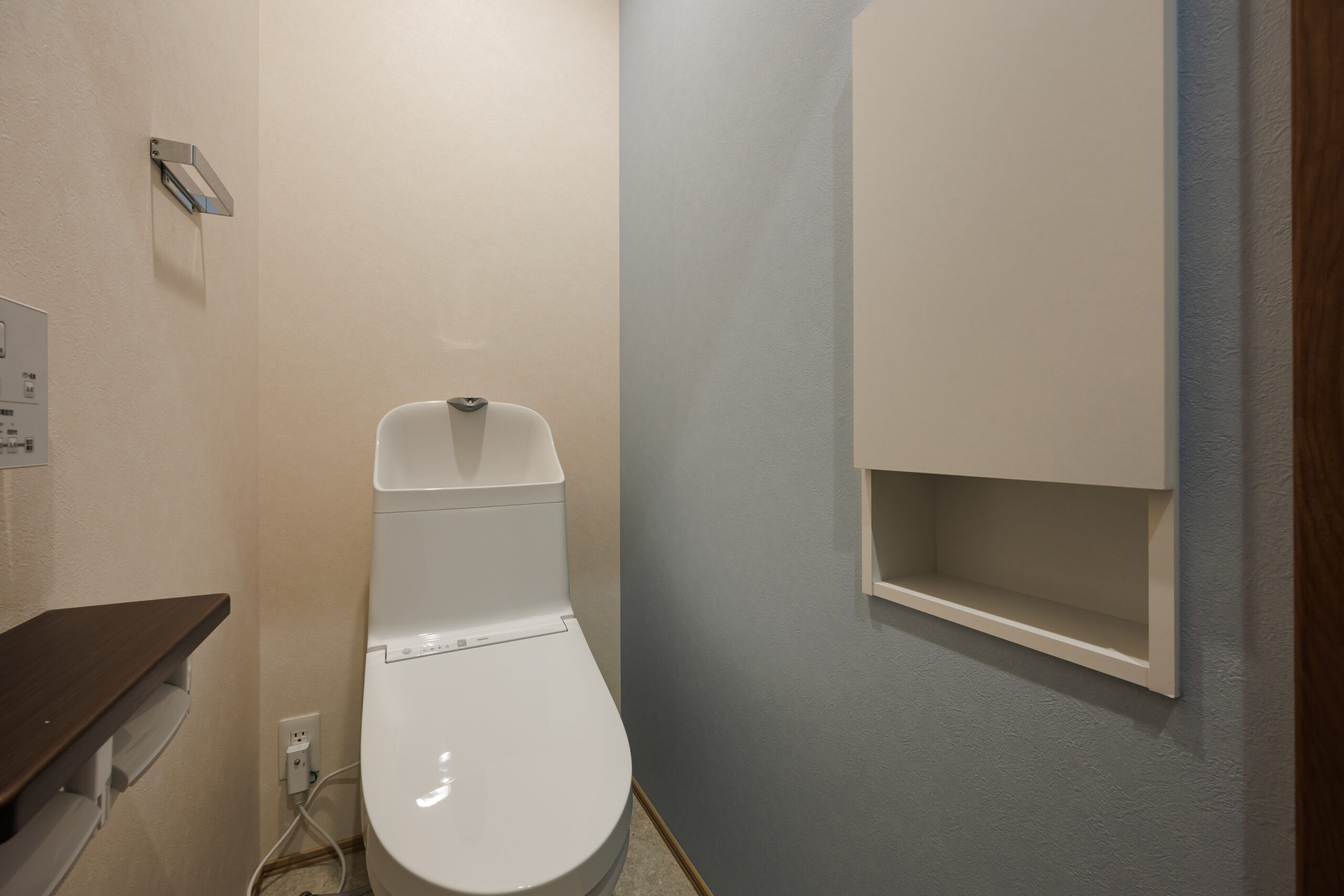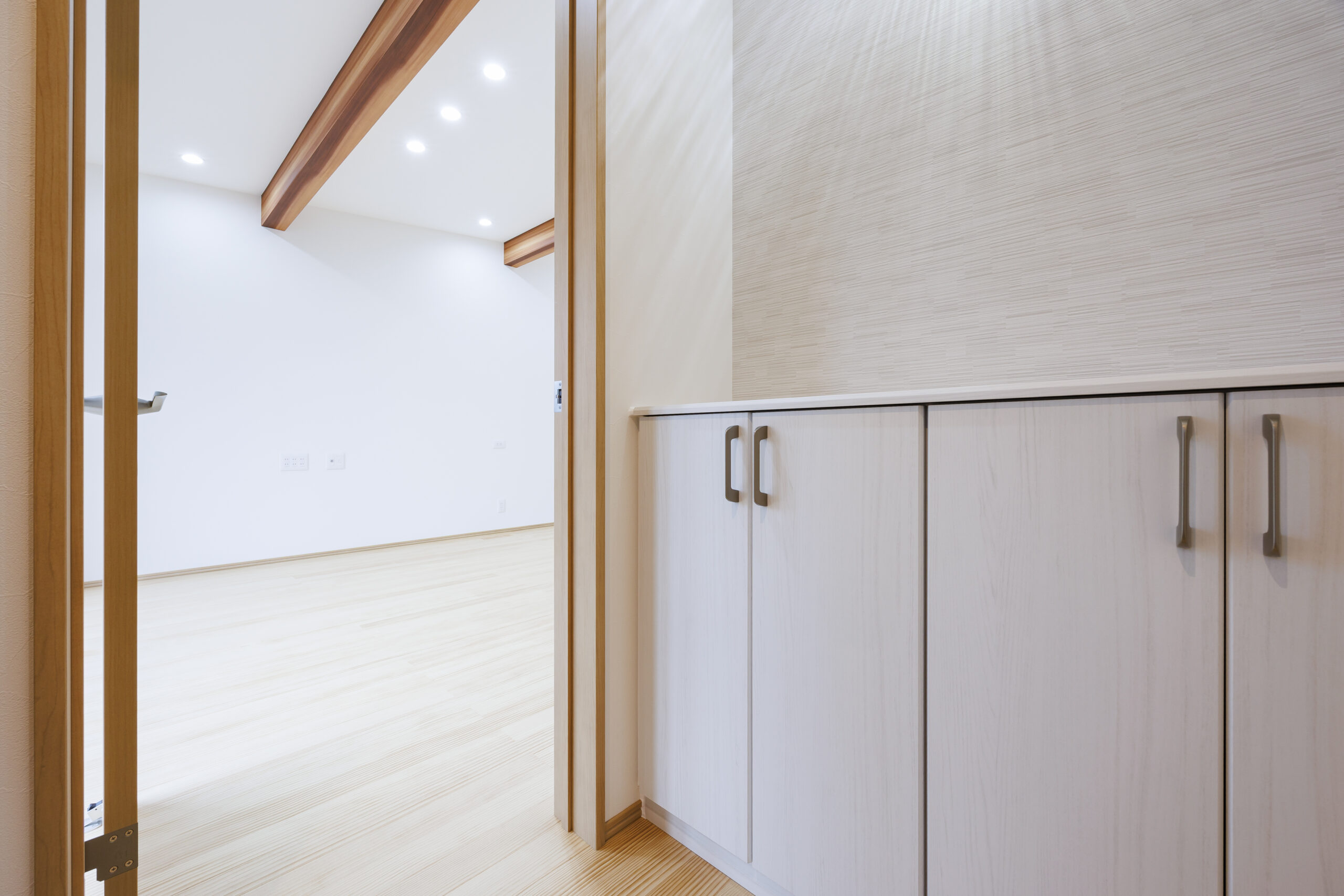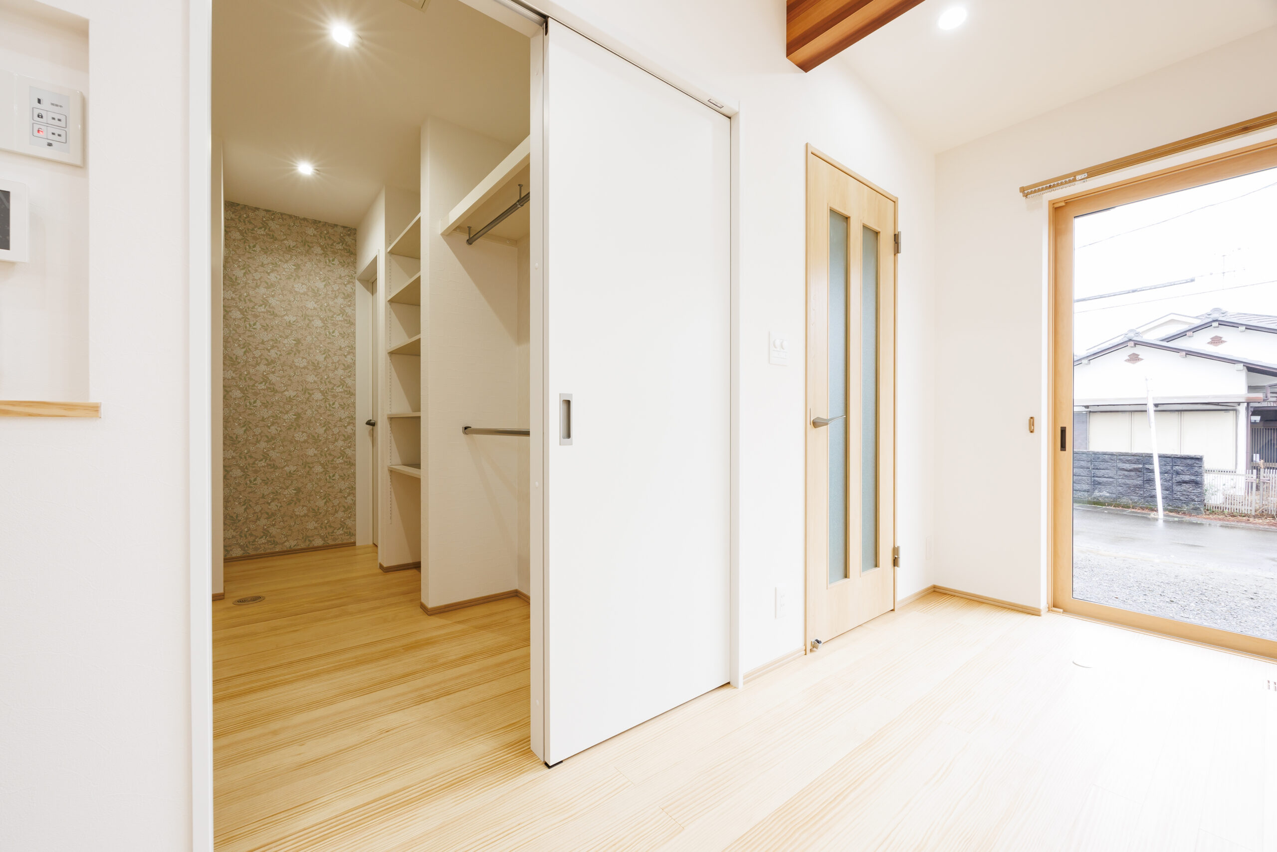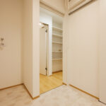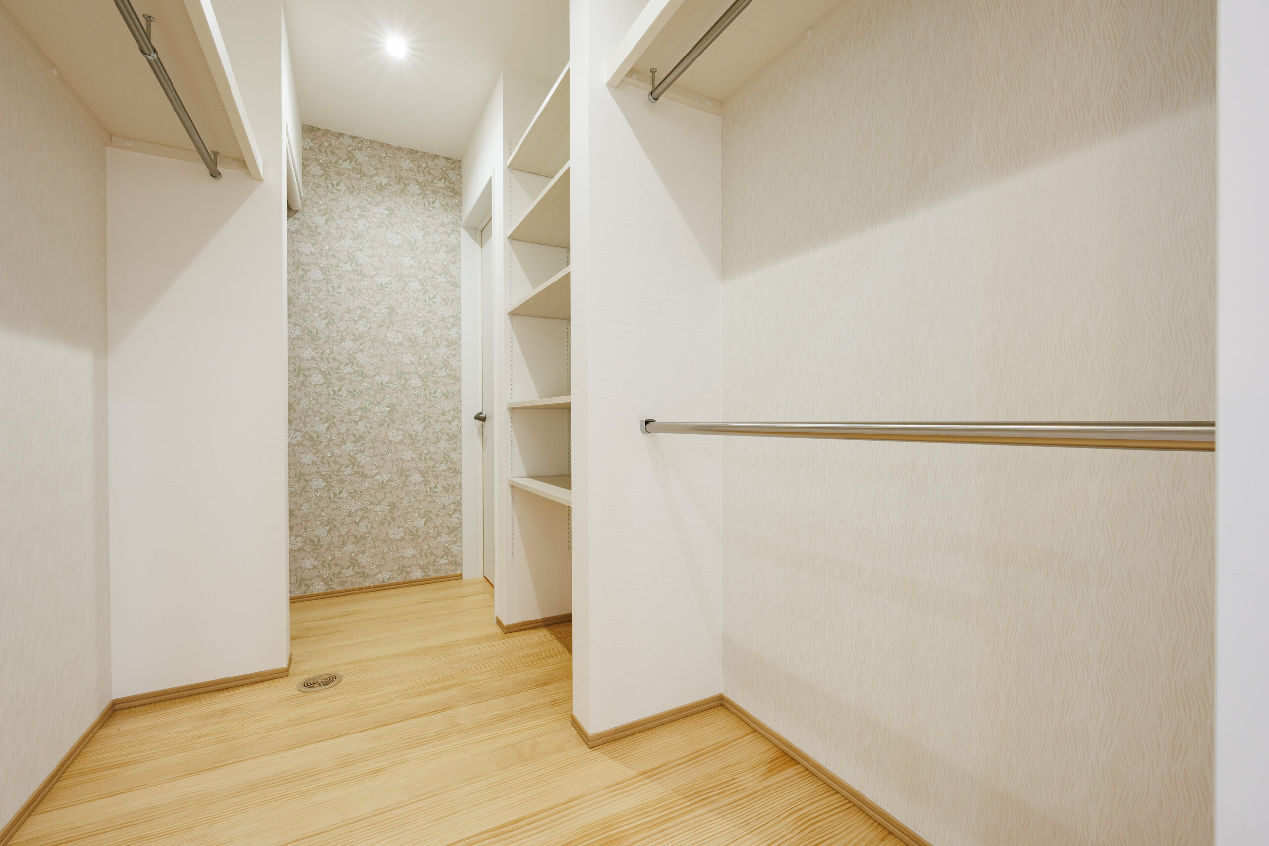 玄関ホールのすぐ横には洗面化粧台とお手洗いを配置し、帰宅後すぐに手洗いができる安心動線を実現。日々の暮らしの中で自然と衛生習慣が身につく、家族にやさしい設計です。