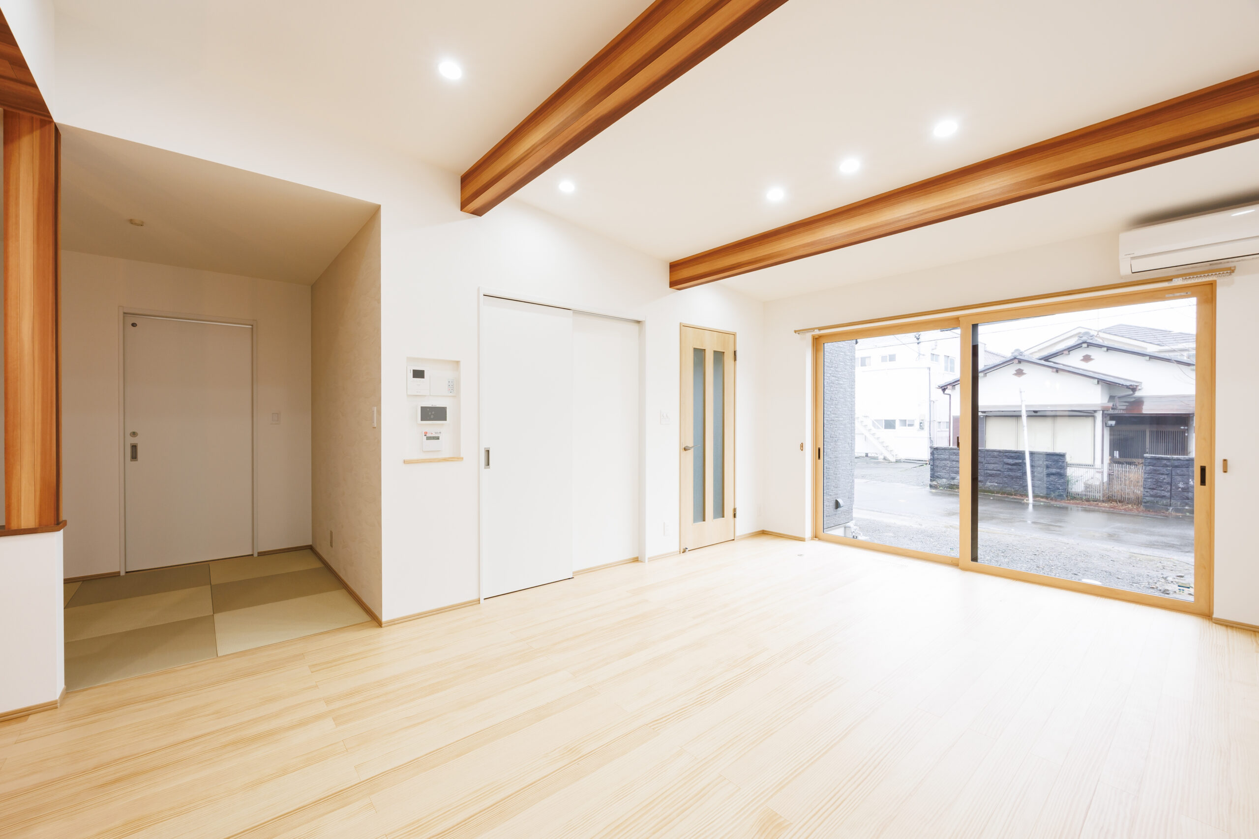 勾配天井と見せ梁が映える1階完結間取りの家